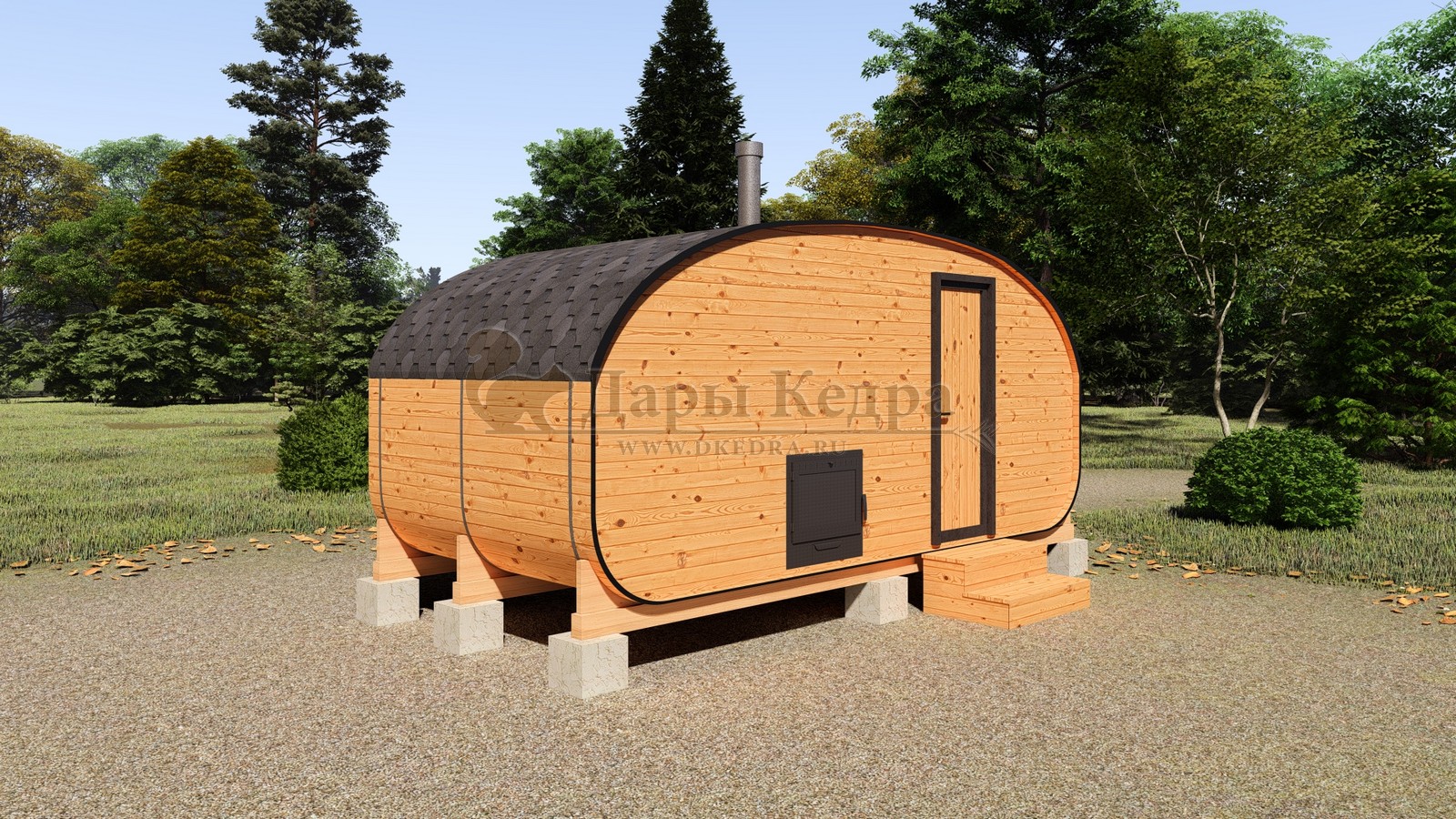 Баня-бочка круглая из кедра 3 метра Это изделие круглой вытянутой формы с двумя отделениями: раздевалкой и парной. Лавочки из кедра находятся по всей длине бани-бочки с обеих сторон. Печь расположена в парилке около дальней стены. Для удобства пользования в раздевалке установлена вешалка и полочка из кедра. За счет небольшой конструкции баня нагревается не более 30 минут. По вашему желанию баню-бочку можно дополнить печью с внешней загрузкой, благодаря которой весь мусор после топки останется на улице. Круглая баня-бочка не требует полноценный фундамент, поэтому при необходимости ее можно перенести в другое место. Обращаем Ваше внимание, что в стандартную комплектацию бани входят лавки в парной с обеих сторон. Дополнительно можно заказать полок открытого или закрытого типа! Кедр обладает ароматическими свойствами. Он не деформируется и влагоустойчив, при правильном уходе за деревом на нем не развиваются грибки и плесень.