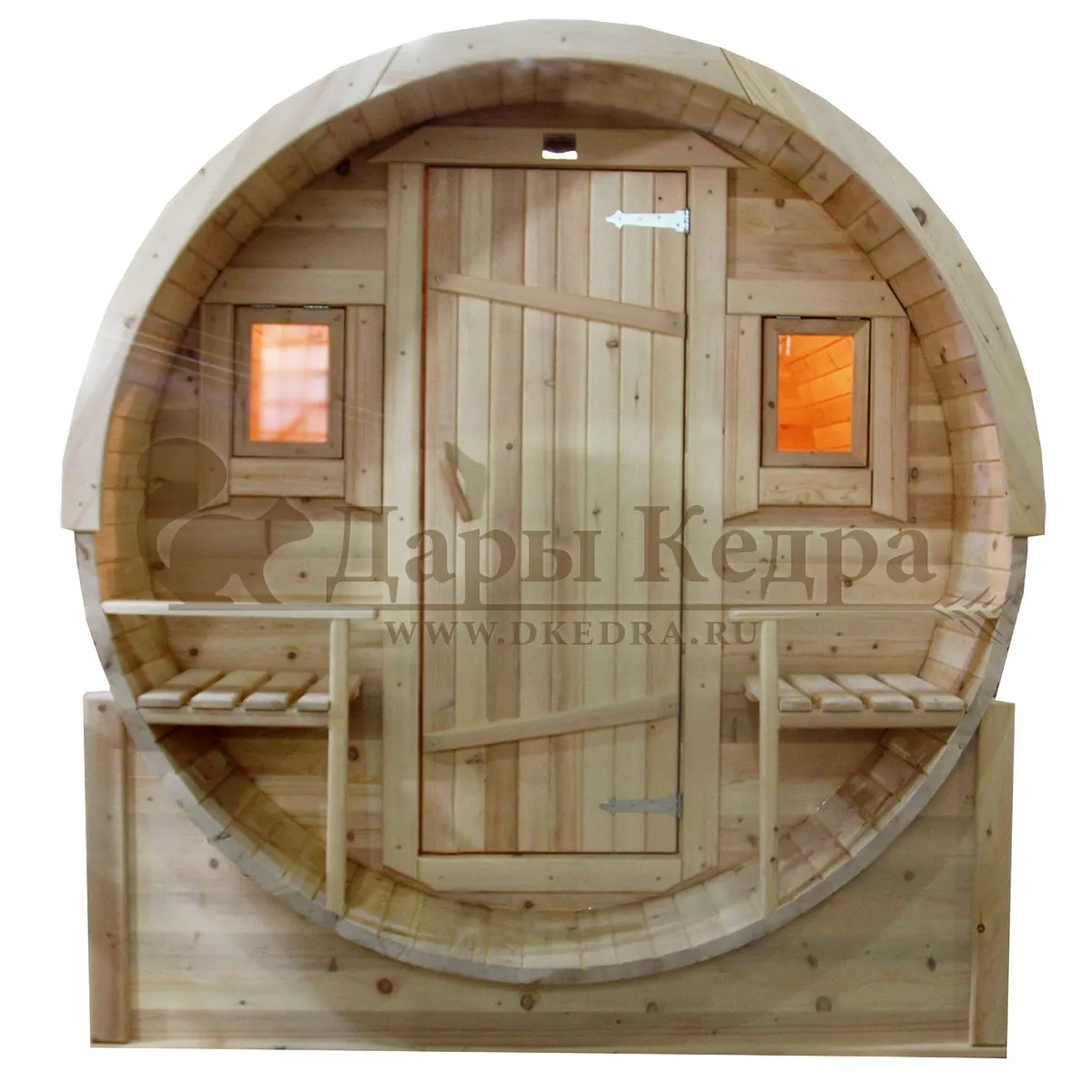 Долгое время мечтала именно о такой бане. В итоге появилась возможность и мы с мужем сразу заказали нашу баню-бочку)) Доставка и работа была не быстрой, мы как раз обратились в самый разгар дачного сезона. Но решили, что подождем еще немного. Баня получилась очень комфортной и уютной. Пахнет кедром обалденно! Довольна вся семья, паримся с большим удовольствием. Рекомендую!