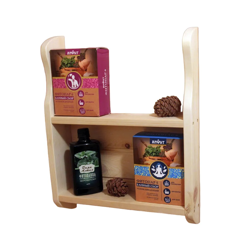 Полка узкая из кедра Полка из кедра станет оригинальным дополнением и украшением в бане или на даче и даже в ванной и на кухне. А тех, кто любит эко-стиль, наши полки удивят по-настоящему своей продуманностью и функциональностью! В бане: данный вариант полки подойдет для размещения коробок с фитосборами, бутылей с шампунем и других нужных банных предметов. На кухне:компактно разместятся здесь небольшие баночки для специй, сыпучих, круп.