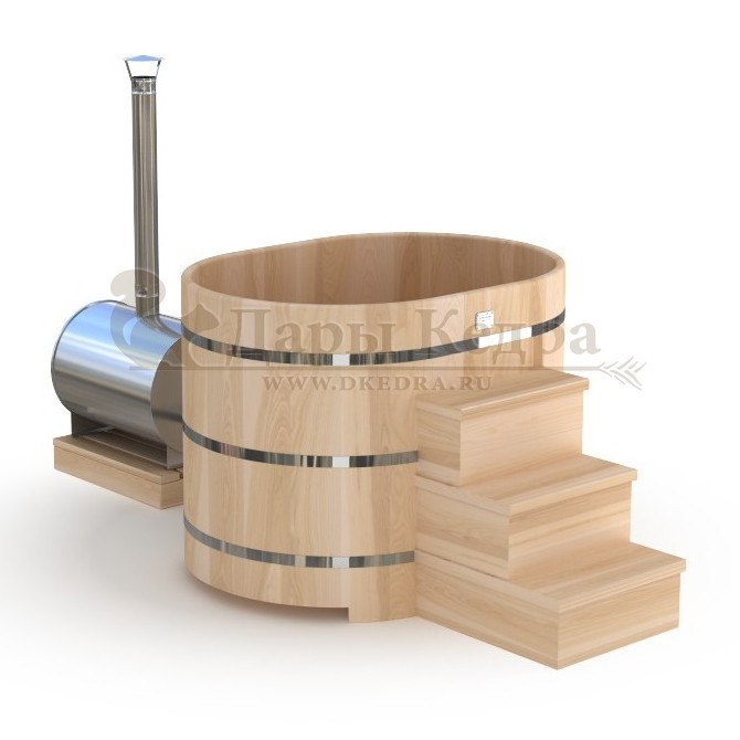 Фурако овальная из кедра со встроенной печью Это уличная баня, которой можно пользоваться круглый год. Купель представляет собой овальную емкость для воды, внутри которой располагаются сиденья из кедра. Нагрев воды происходит за счет встроенной печи, которая находится внутри купели за перегородкой. Рекомендуем приобрести термокрышку и весло для перемешивания воды для ускорения нагрева. Для удобства пользования японская баня фурако оборудована внешней и внутренней лестницей из кедра. В комплектацию этой модели входит совок с длинной ручкой, который позволяет извлекать угли и золу после эксплуатации изделия. Целебная древесина кедра богата фитонцидами и эфирными маслами, которые активируются при нагревании. Таким образом, во время процедур парения организм насыщается полезными веществами.