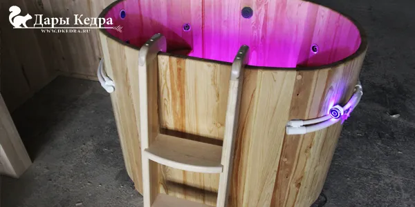 Конструируя модели, мы продумываем всё до мелочей. Для безопасного погружения и комфорта внутри есть сиденье, лестницы предусмотрены, как снаружи, так и внутри. Купель поставляется в разобранном или готовом виде. Разборные части легко соединяются. При разбухании или усыхании дерева натяжение обручей регулируется с помощью натяжных болтов. К изделию прилагается подробная инструкция по уходу за древесиной.